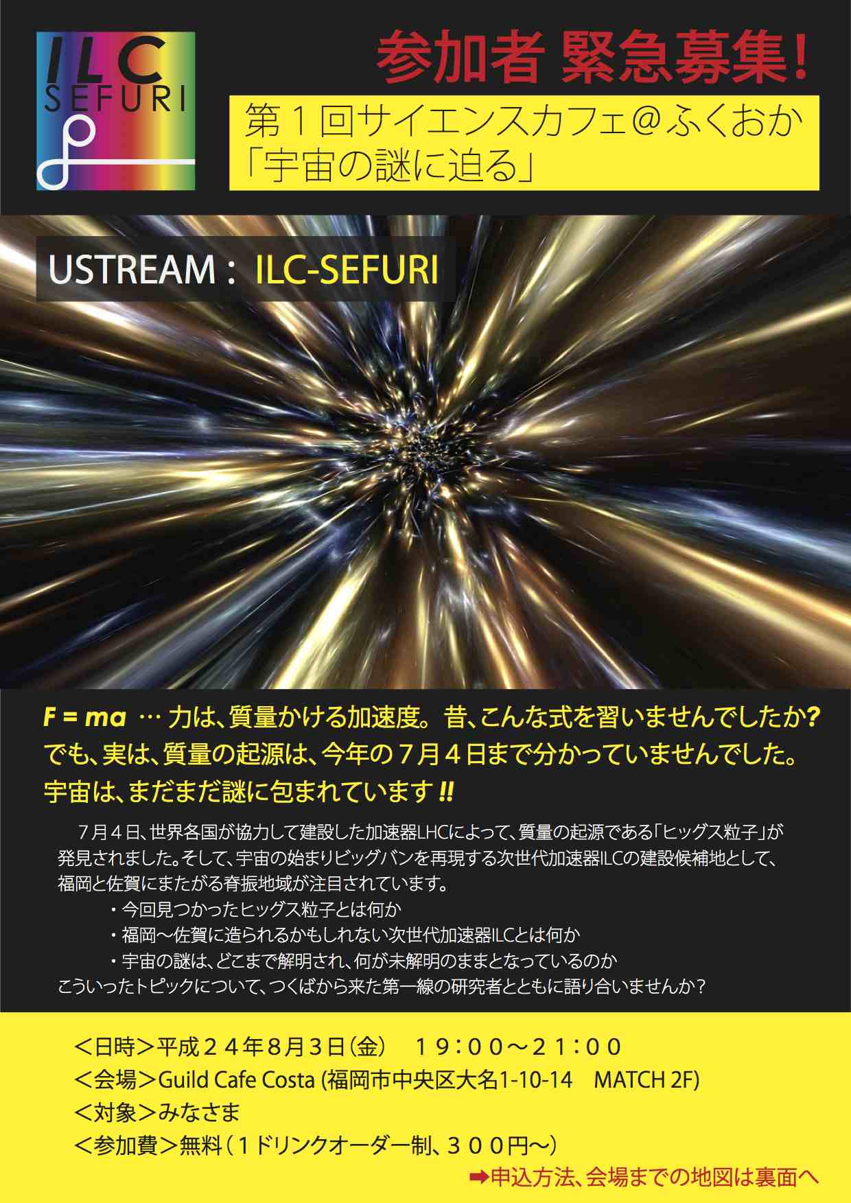 現在計画中の新しい加速器、ILC(国際リニアコライダー)についてのお話もありました。