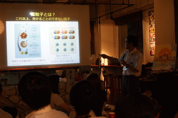 「素粒子とは何なのか」という基本的な事や、次世代の精密実験(ILC)でのヒッグス(と思われる新しい) 粒子研究についても説明して頂きました。