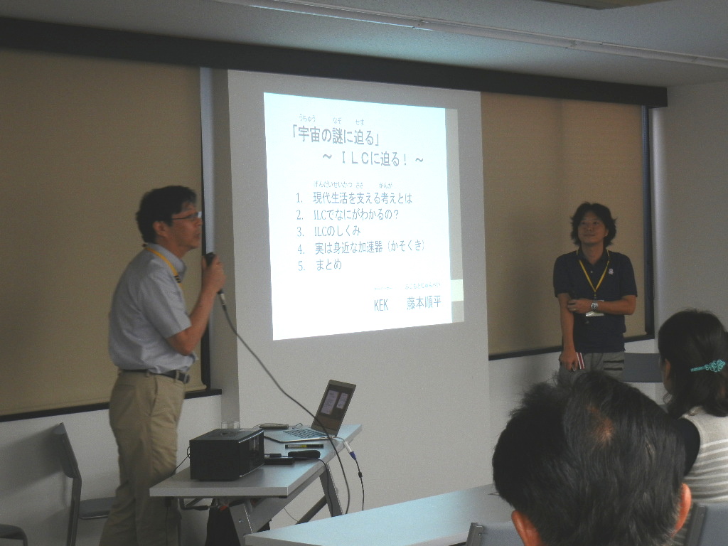 加速器の基本的な原理の説明からはじまり、より高速まで加速するにはどうするかなどについて、詳しく説明していただきました。やはり現代の高エネルギー分野に存在する技術の集大成ともいえる加速器だけあって、ILCはとってもすごいですね。