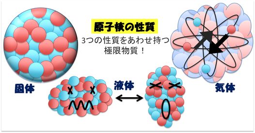 実は、この疑問の答えは「全て正しい」なのです!!原子核は固体であり、液体であり、気体でもあるのです。この3つの性質をすべて持つ原子核って、不思議な物質ですよね。