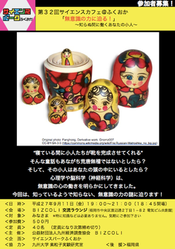 サイエンスカフェ@ふくおか、第32回目のテーマは「無意識の力に迫る!~知らぬ間に働くあなたの小人~」です。今回は無意識の力に迫ります!!
