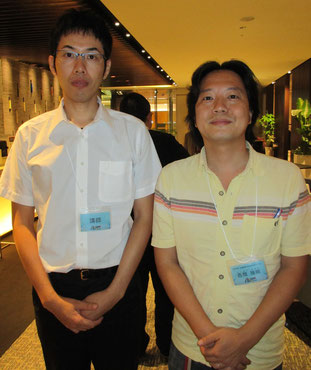 分部利紘講師(左)と聞き手の素粒子実験研究室 吉岡博士(右)