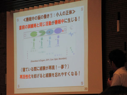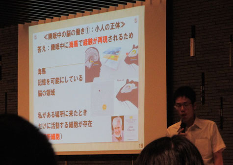 後半の質問タイムでは、主に睡眠と記憶についての質問が多く飛び交っていました!今日は無意識についてのお話でしたが、そもそも無意識と意識の差は何ですか?という質問がありました。実は意識と無意識の差は、正確にはわかっていないそうです。何が意識で何が無意識かを厳密に考えると難しいですね。