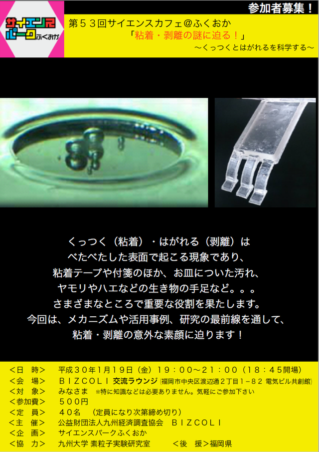 「『粘着・剥離の謎に迫る!』〜くっつくとはがれるを科学する〜」