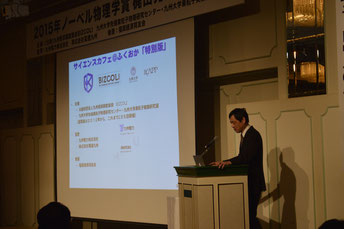 大学院生時代に川越先生と梶田先生が所属していた小柴研究室についてのことやそれぞれの先生が進んだ実験グループ、素粒子物理学の簡単なお話をされました。また、2013年にノーベル賞を取ったヒッグス粒子の発見やILC計画等の話もされました。