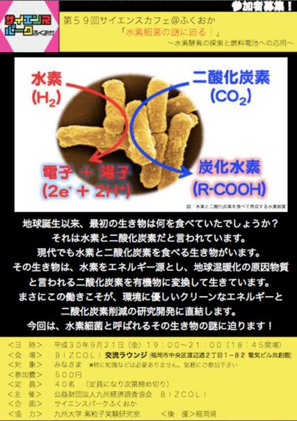 第59回「水素細菌の謎に迫る」〜水素酵素の探索と燃料電池の応用〜
