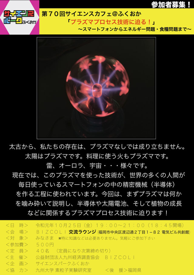 第70回「プラズマプロセス技術に迫る!~スマートフォンからエネルギー問題・食糧問題まで~」
