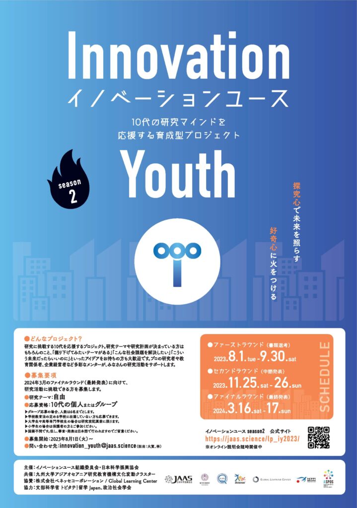 10代の研究マインドを応援する育成型プロジェクト「イノベーションユース season2」