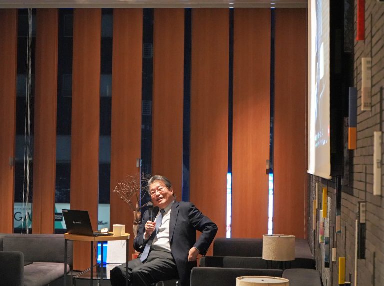 会場がお祝いムードに包まれる中、九州大学総長の石橋達朗先生が講師として登壇されました。