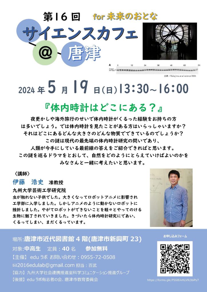 【5/19開催】第16回サイエンスカフェ@唐津「体内時計はどこにある?」
