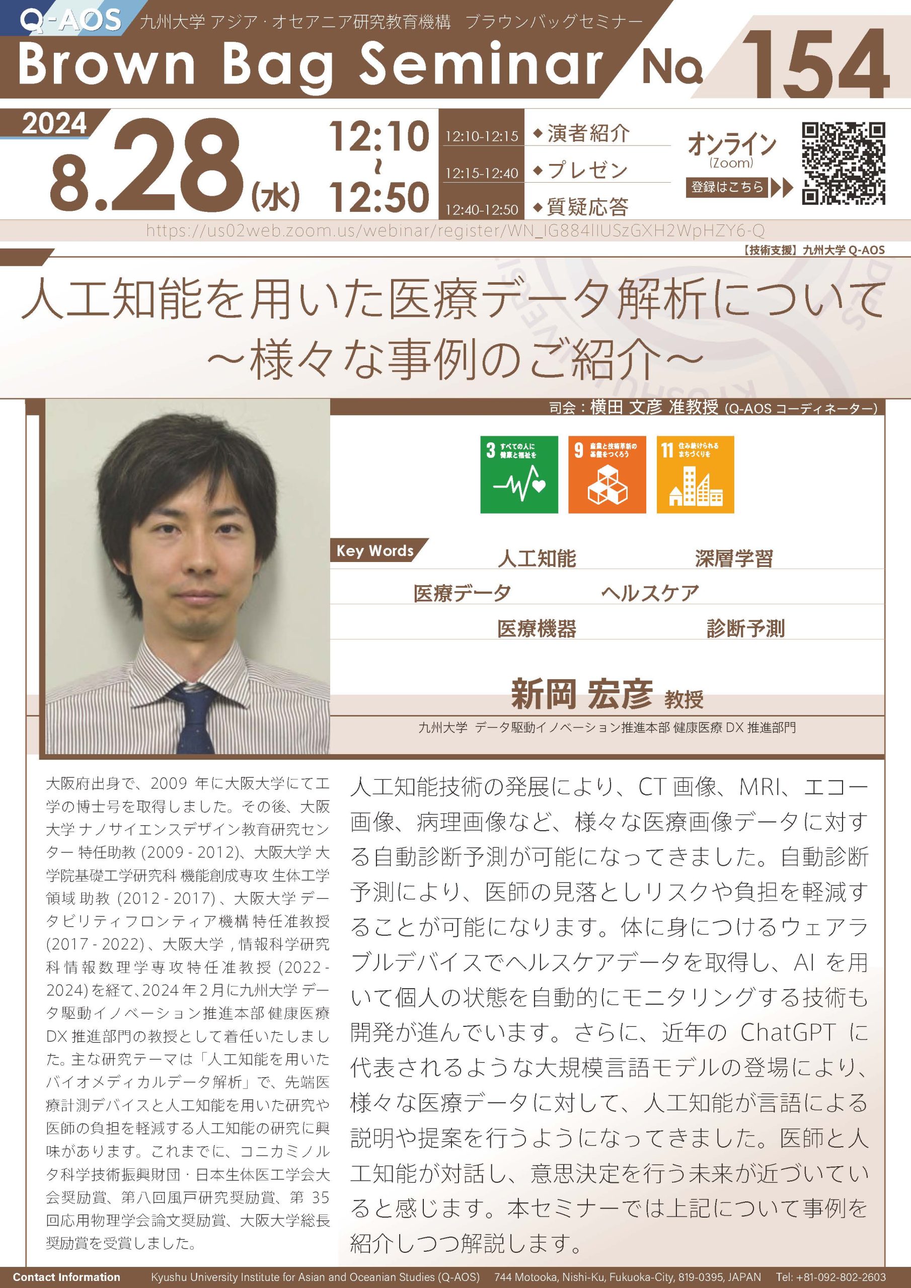 | 登 壇 者 | 新岡 宏彦 教授 (九州大学 データ駆動イノベーション推進本部 健康医療DX 推進部門) |