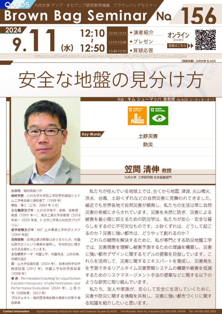 【9/11開催】第156回Brown Bag Seminar Series「安全な地盤の見分け方」