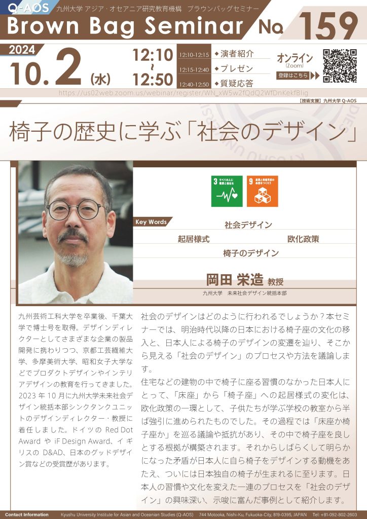 【10/2開催】第159回Brown Bag Seminar Series椅子の歴史に学ぶ「社会のデザイン」