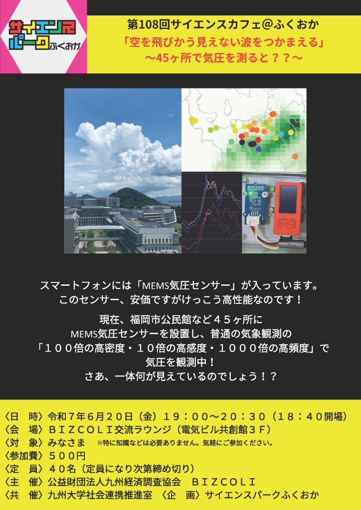【6/20開催】第108回サイエンスカフェ@ふくおか「空を飛びかう見えない波をつかまえる」〜45ヶ所で気圧を測ると??〜