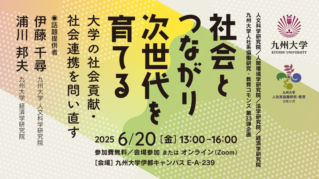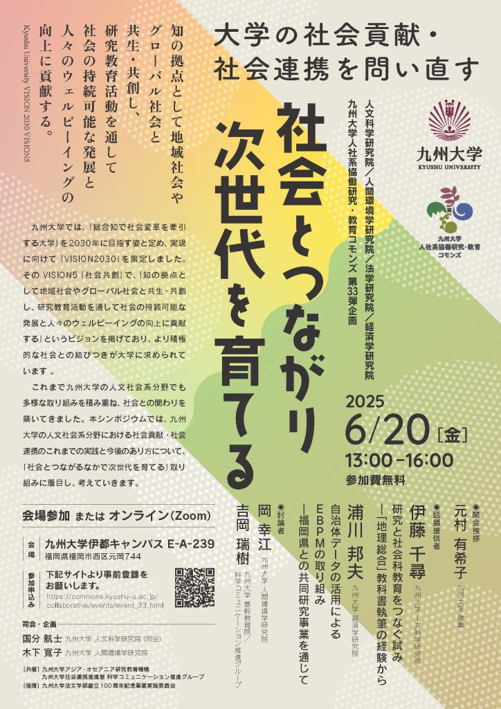 【6/20㈮開催】人社系協働研究・教育コモンズシンポジウム「社会とつながり、次世代を育てる―大学の社会貢献・社会連携を問い直す―」