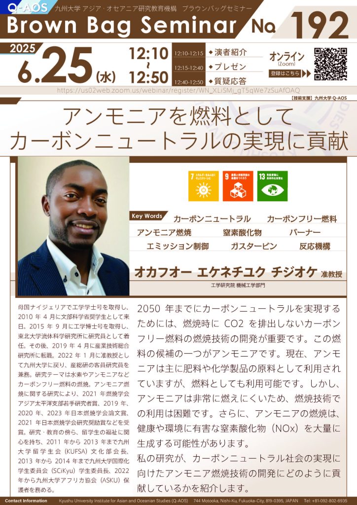 【6/25開催】第192回Brown Bag Seminar Series「アンモニアを燃料としてカーボンニュートラルの実現に貢献」