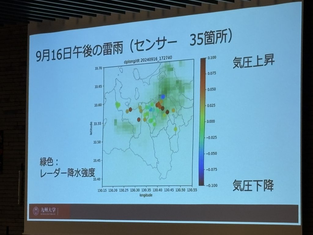 市内45ヶ所という、密度の高い気圧測定をするということは世界的にも珍しいことかもしれません!と中島先生。観測をしてみてわかった変化があり、その変化をもとに予測できる気象現象があるのだそうです。一般的な天気予報では、降水確率や気温に注目しがちで、気圧はあまり気にしてなかった…という方も。一方で、気圧の変化で片頭痛がする。体調に変化が起きる。気圧に敏感!という方も少なくない様でした。