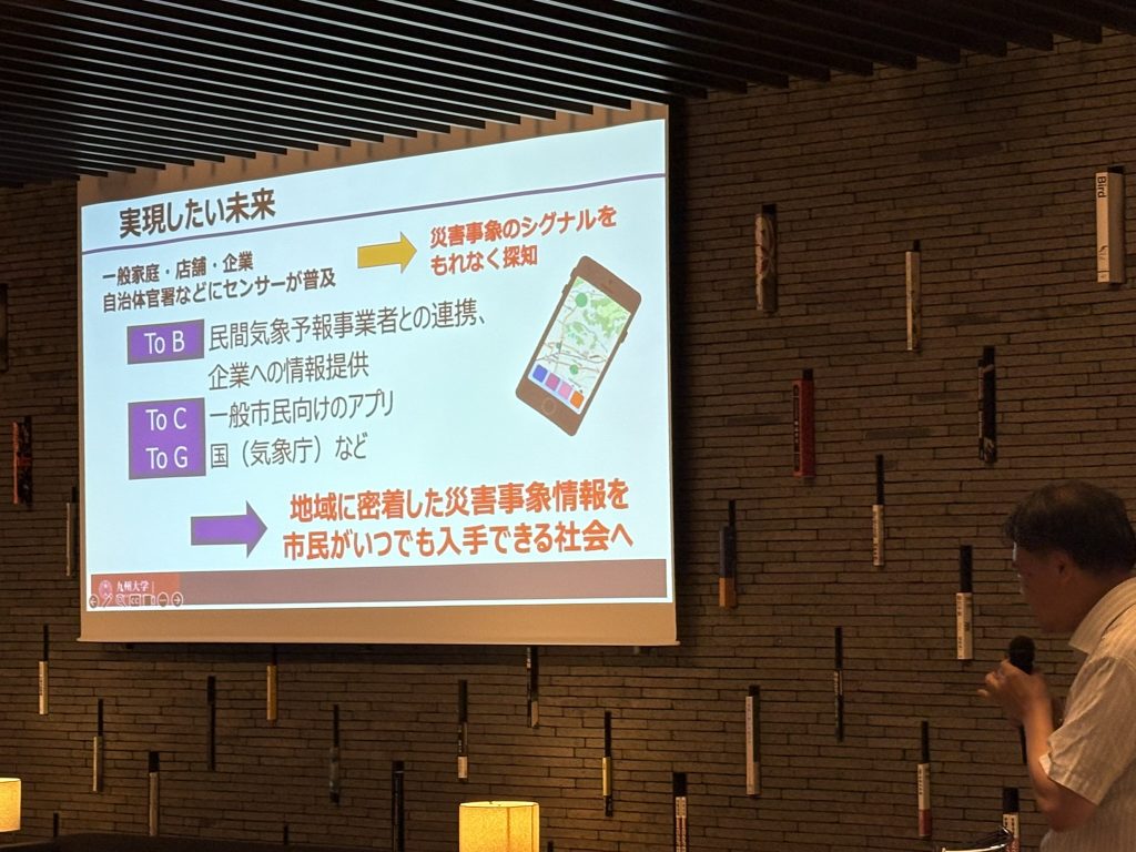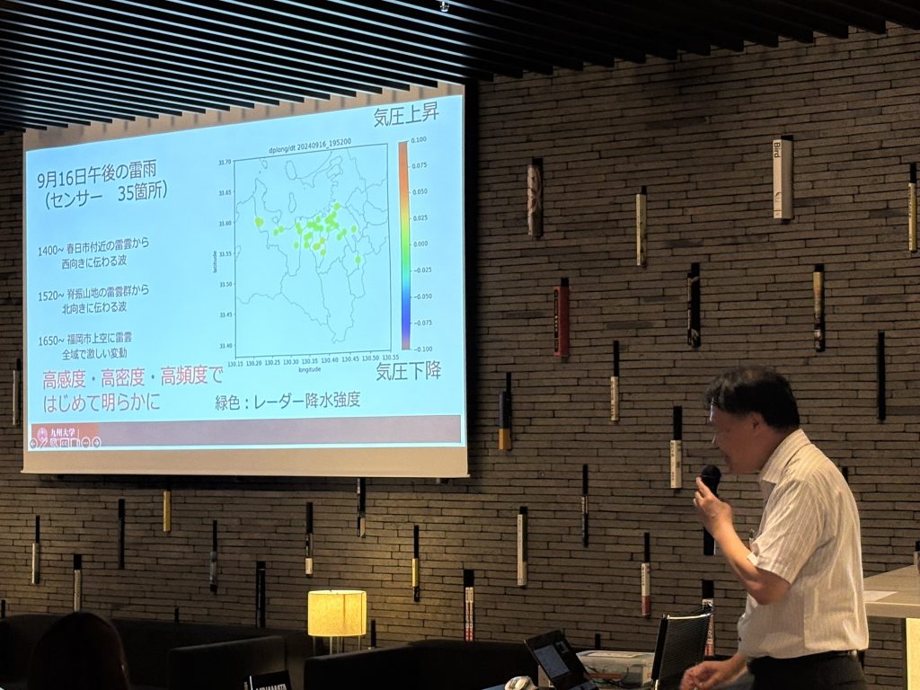 気圧の変化を測定するため、福岡市内45ヶ所に装置を設置し観測されている中島先生。福岡市実証実験フルサポート事業として取り組まれています。