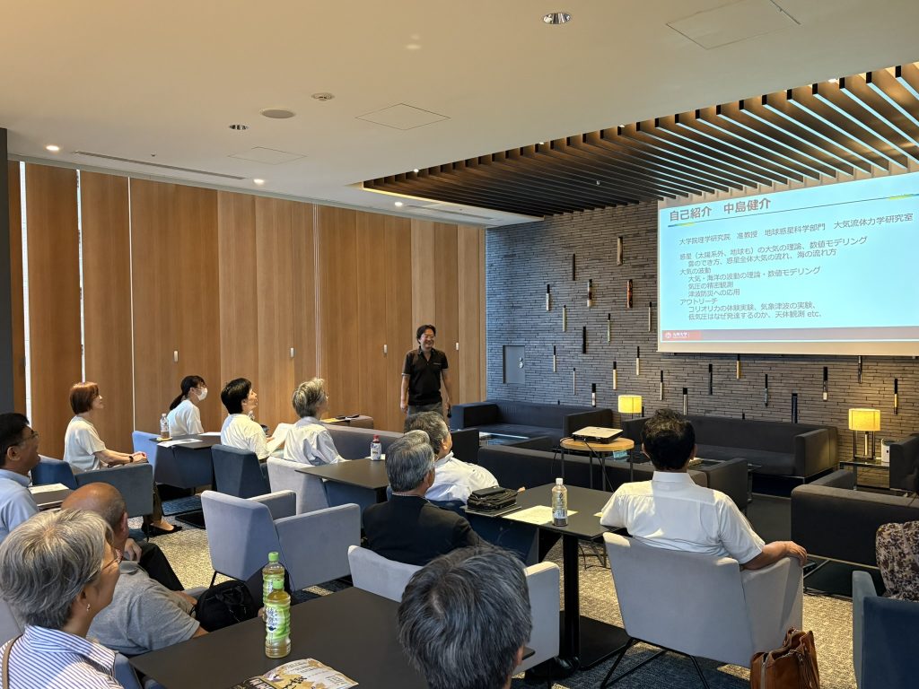 中島先生の専門分野は、地球や太陽系内外惑星の大気・海洋・内部の流体運動、および、惑星の地震学等の理論的研究をされています。近年では、大気波動が津波の早期警戒に使えるのではないか?というお話もあり、大気波動の観測も行っていらっしゃるそうです。