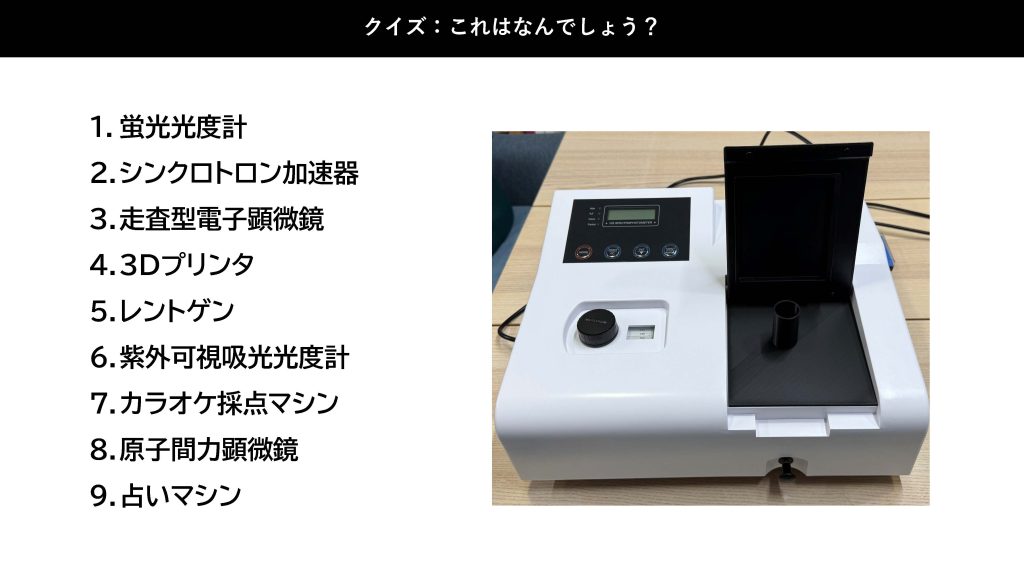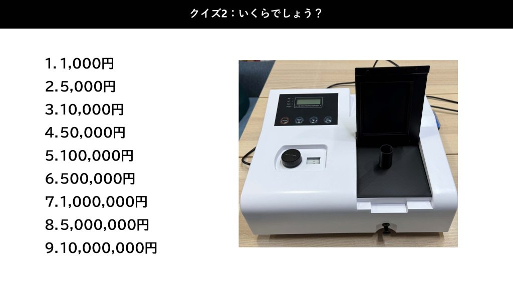 最初に、ある機械についての9択クイズが出題されました。選択肢が多い、、、と会場には笑いが!