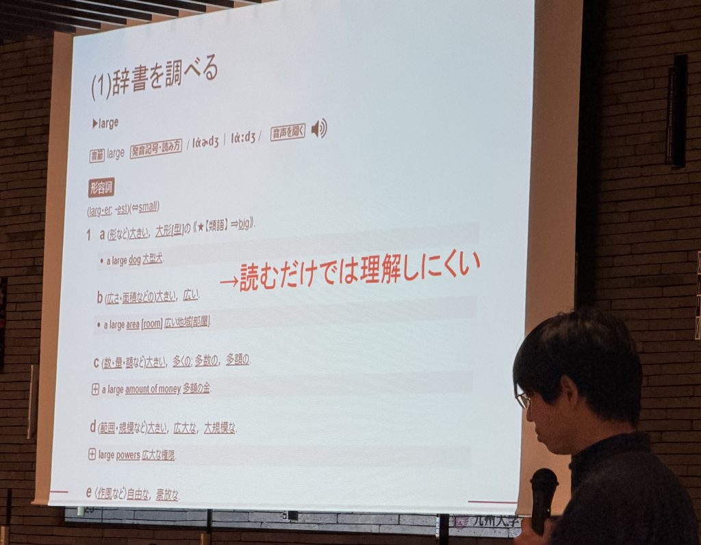 時々、笑いも交えて、緩急のある空気感の中でのお話でした。普段何気なく使っている英単語の奥深さや、学習に役立つヒントを楽しく学べるお話で、あっという間に第一部の講演が終わりました。
