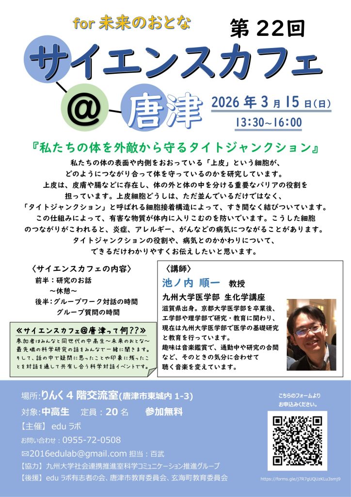 【3/15開催】第22回 サイエンスカフェ@唐津「私たちの体を外敵から守るタイトジャンクション」