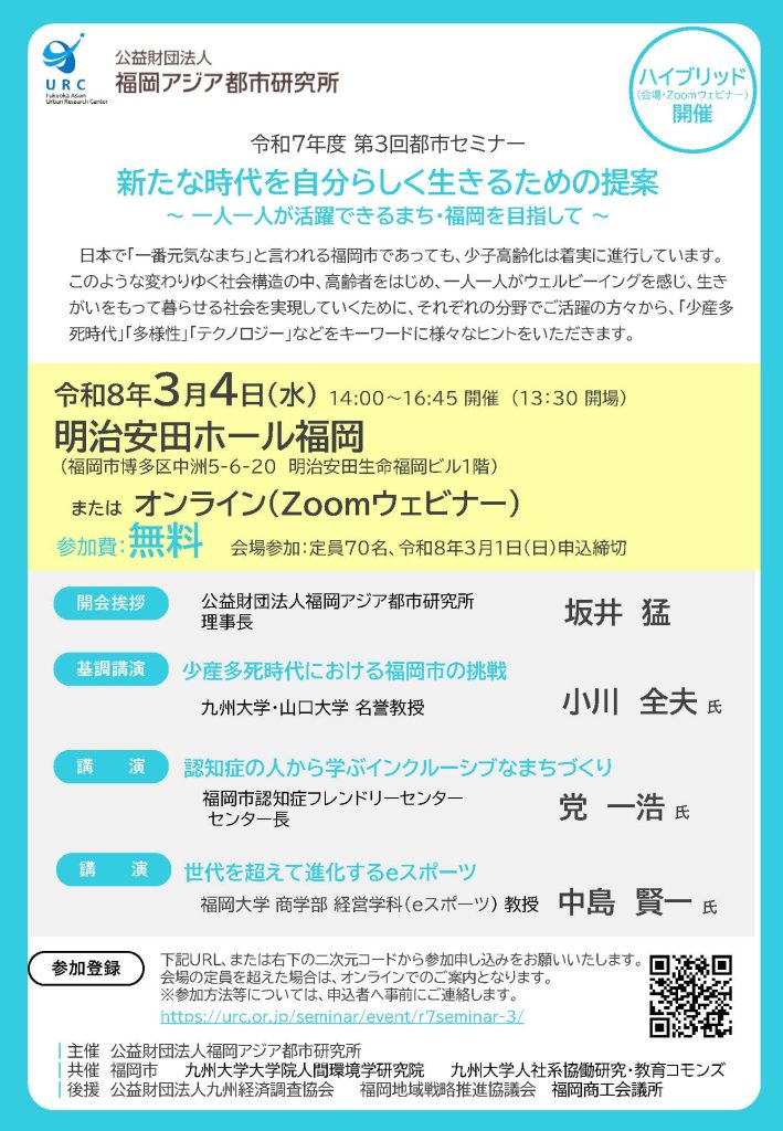 福岡アジア都市研究所は、令和7年度第3回都市セミナー